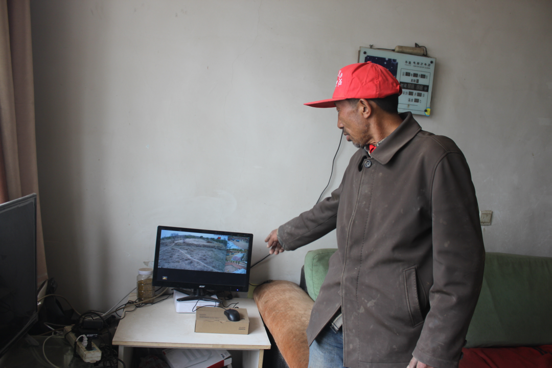 看著記者驚訝的表情,梁忠厚解釋道:“這是一臺監(jiān)控設備,目前還沒有開通互聯(lián)網(wǎng)。”說著,梁忠厚把拐杖立在一旁,費勁的蹲下身子,將電腦插上電源?!翱?,一打開電腦,地里的動靜都能知道。我腿腳不利索,這樣省得來回跑路?!绷褐液裾f道。